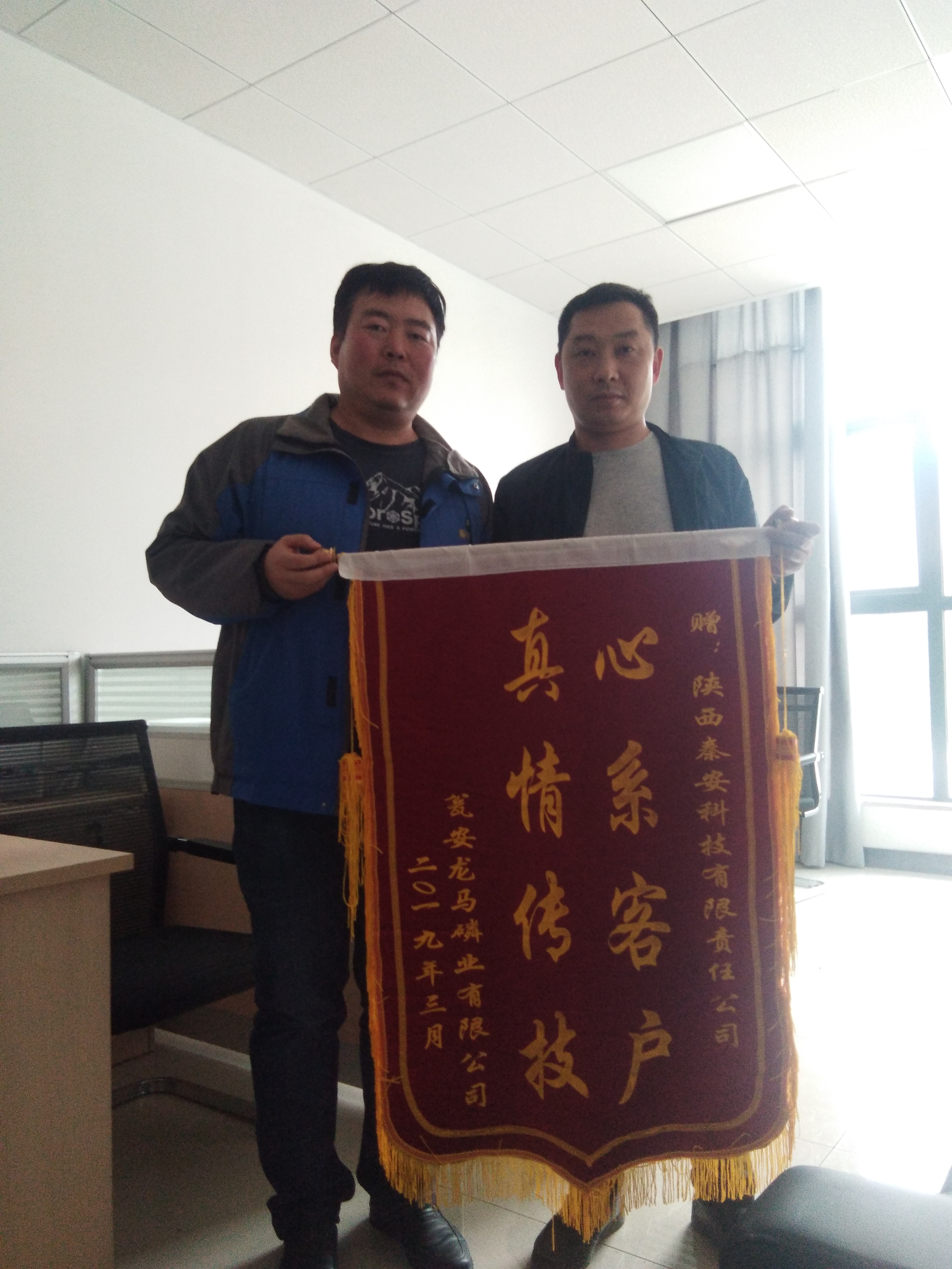 為表彰秦(qin)安科技保(bao)運團隊的出色(se)表現和感謝(xie)保(bao)運項目全體人(ren)員的辛勤工(gong)作與付出,甕(weng)安龍馬磷(lin)業有(you)限公司總(zong)經(jing)理萬慶成向保運(yun)團隊頒發了(le)“心系客戶、真情(qing)傳技”錦旗和團隊榮譽證書,同(tong)時對秦安(an)科技保運(yun)人員精湛的技術與(yu)認真負責的工(gong)作態度給予了高度的肯定與(yu)贊揚。