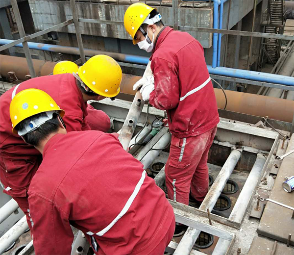 由于噴(pen)(pen)吹管(guan)損(sun)壞(huai)嚴重、布袋破損(sun)較多(duo),要(yao)徹(che)底解決煙塵(chen)問題就必須(xu)更(geng)換掉(diao)所有損(sun)壞(huai)的噴(pen)(pen)吹管(guan)和布袋,淺嘗輒止根本(ben)解決不了問題,項目(mu)部(bu)經過與(yu)甲方動力分廠黃廠長協商,決定徹(che)底更(geng)換所有損(sun)壞(huai)的部(bu)件。