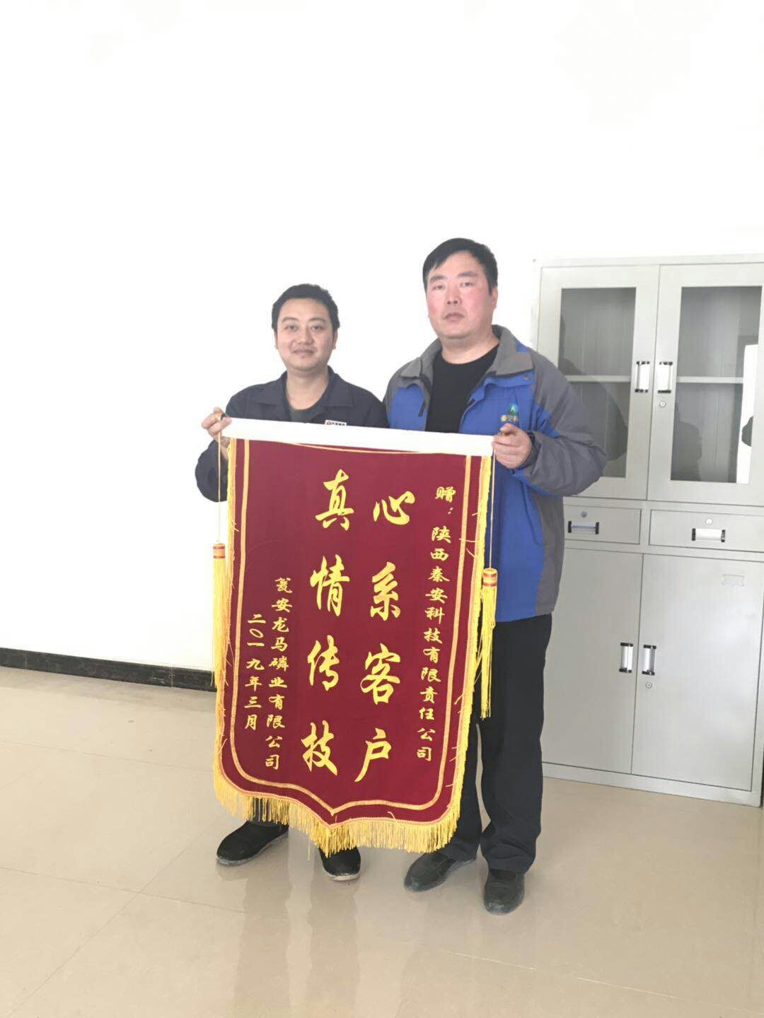 為表彰秦(qin)安科技保(bao)運團隊的出色(se)表現和感謝(xie)保(bao)運項目全體人(ren)員的辛勤工(gong)作與付出,甕(weng)安龍馬磷(lin)業有(you)限公司總(zong)經(jing)理萬慶成向保運(yun)團隊頒發了(le)“心系客戶、真情(qing)傳技”錦旗和團隊榮譽證書,同(tong)時對秦安(an)科技保運(yun)人員精湛的技術與(yu)認真負責的工(gong)作態度給予了高度的肯定與(yu)贊揚。
